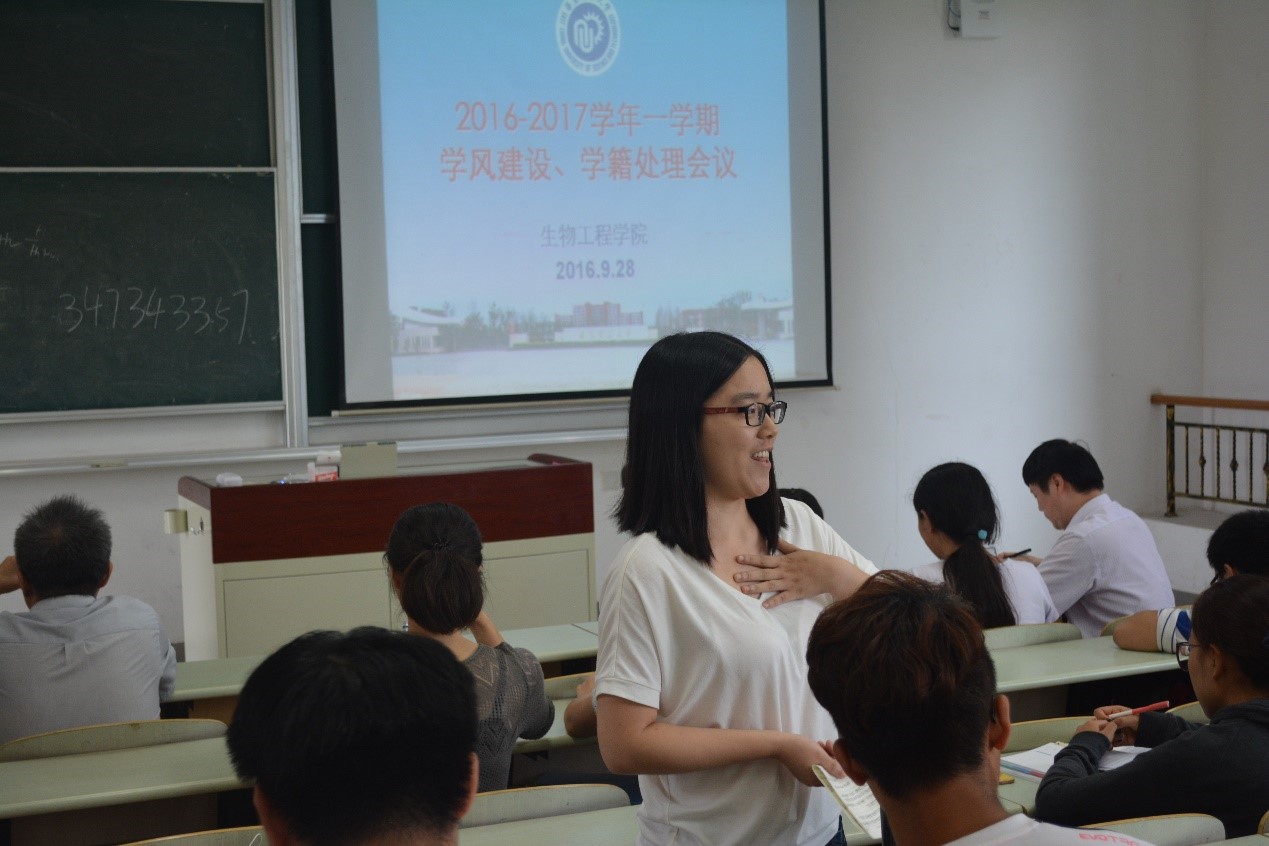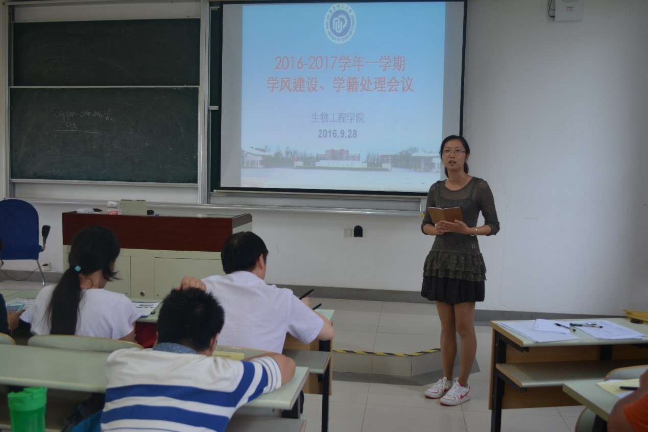 9月28日,生工学院在奉贤校区召开了学风建设、学籍处理会议,学院教学副院长、系主任、辅导员、班导师、教务员、所有学籍处理学生、退学试读学生的家长等出席了会议。