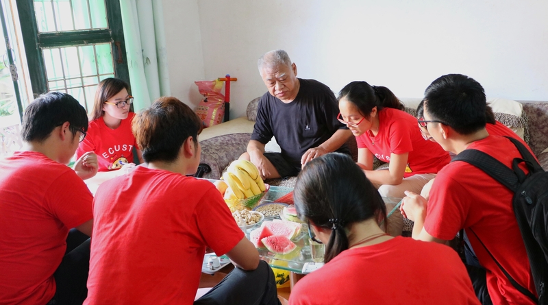 在中国工农红军之中央红军开始长征的集结地和出发地——于都,冒着烈日炎炎,顾不上一路上的舟车劳顿,实践团队直奔老红军后人的住所进行走访。老红军钟明的儿子钟建平先生动情地讲述了父亲一生献身革命事业的英勇事迹,并寄语大学生们不忘革命先辈用鲜血换来的和平,用心学习、认真做人,尽最大努力回报祖国和社会。生工师生们有幸得以翻阅了钟明老先生珍藏的相册,黑白相片重现了时光深处那段宝贵的记忆。当年英姿飒爽的战士有多少人毅然为了革命理想为国捐躯?又有多少人刚走出戎马征程即可担起建设新中国的重任?一张张拍摄于前线后方、定格于一九四九年前后的历史照片以无声的语言带给师生们冲击内心的震撼,更坚定了继承红色基因,弘扬长征精神的决心。