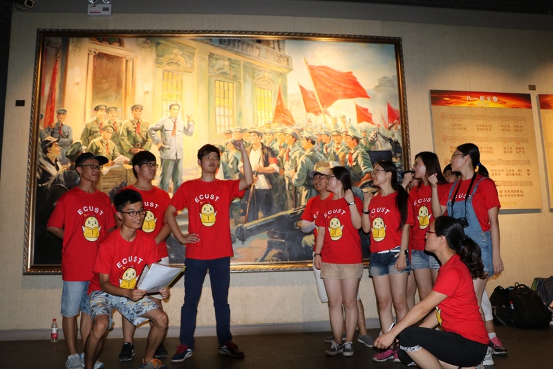实践团首先来到江西省会南昌市追溯八一精神,先后参观了八一广场和八一南昌起义纪念馆。广场上伫立的八一起义纪念塔和展馆中展览的各种物品,无不使师生们深切地感受到中华儿女不畏强敌、英勇斗争的坚强决心和当今和平生活的来之不易,更加坚定了跟党走中国特色社会主义道路的理想信念。参观学习的过程中,实践团成员通过重现历史画作场景的方式,以此更切身加深纪念之情,向革命先辈表达最崇高的敬意。