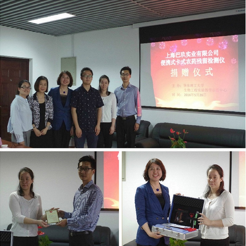 5月26日下午,上海巴玖实业有限公司便携式卡式农药残留检测仪捐赠仪式,在奉贤校区实验七楼613室举行。上海巴玖实业有限公司经理张鹏、李翠平,上海市慈善基金会募捐部副部长陈晓菲、处置部副部长陆双龙, 一本道