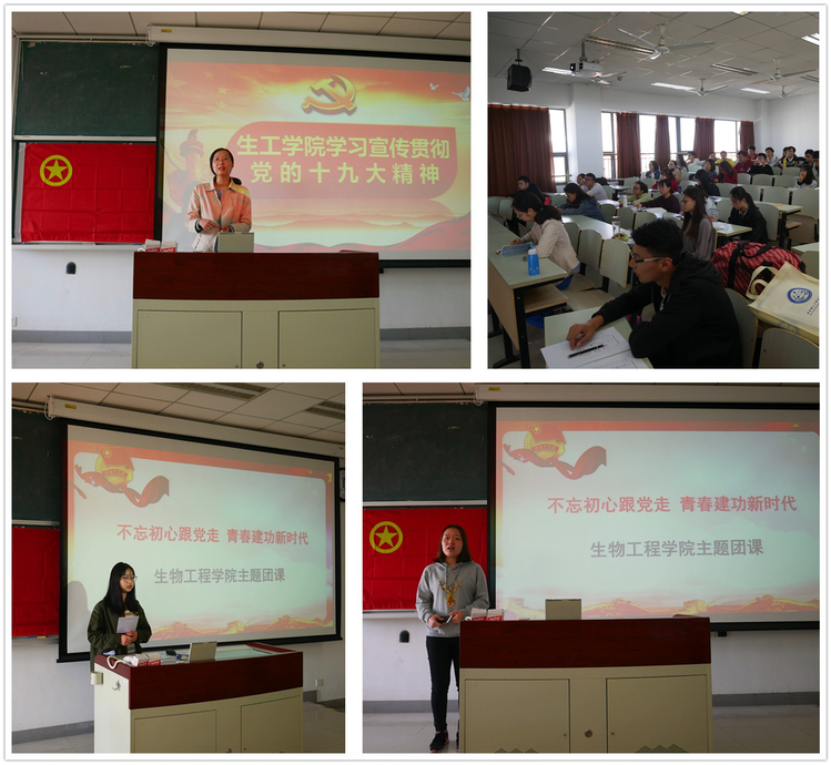 11月上旬,生工学院团委组织了一堂“不忘初心跟党走·青春建功新时代”的主题团课,大一至大三各团支部骨干相聚在奉贤校区D教,相互聆听与交流,共享了生工团支部建设的智慧,迸发了团学工作的新思路。