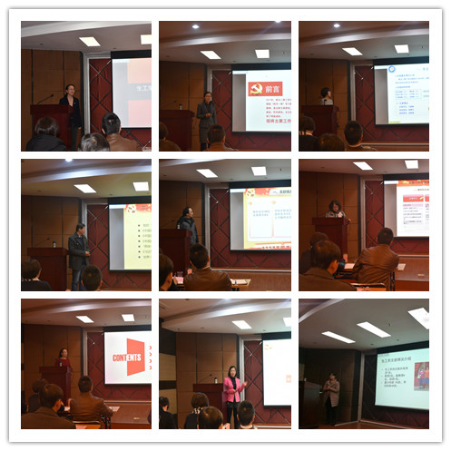 9位教工党支部书记依次做述职发言,从支部基本情况、组织生活的开展、工作中的不足、未来的工作打算等方面借助PPT进行了汇报。与会的党委委员对教工支部书记的述职进行了点评,提出很多建议如支部工作与所在部门的教学科研更加紧密地结合、安排教工党支部和学生党支部共建、支部生活要多样化等。