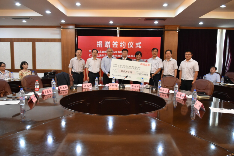 副院长兼生物反应器工程国家重点实验室主任张立新、山东金城医药集团股份公司董事长赵叶青、总经理杨修亮等出席了捐赠仪式。