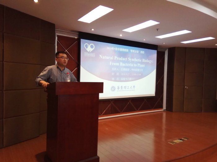 青教联主办、我院青教联承办的学术沙龙活动于9月27日下午在徐汇校区实验十八楼如期举行。本次学术沙龙活动邀请到了来自中国科学院植物生理研究所的王勇教授,报告的主题是“天然产物的合成生物学:从微生物到植物”。报告吸引了多位青年教师及在读博士生前来参会。