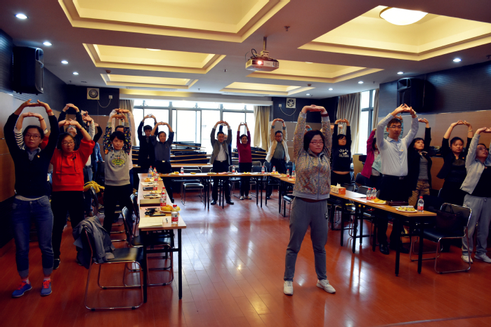 活动伊始,食品系周英同志的“健康饮食”微讲座为活动拉开序幕,报告贴近生活、生动有趣,阐述了饮食与健康的密切联系。接着,体育学院陈婧同志“高校教师健康状况及职业病预防”的专题报告,动静结合,结合视频为党员们现场指导《八段锦》健身操的练习。姚文、陆兵对本次活动进行了点评,希望建立长效机制共同探索更多途径为满足人民对美好生活的需要不懈奋斗!