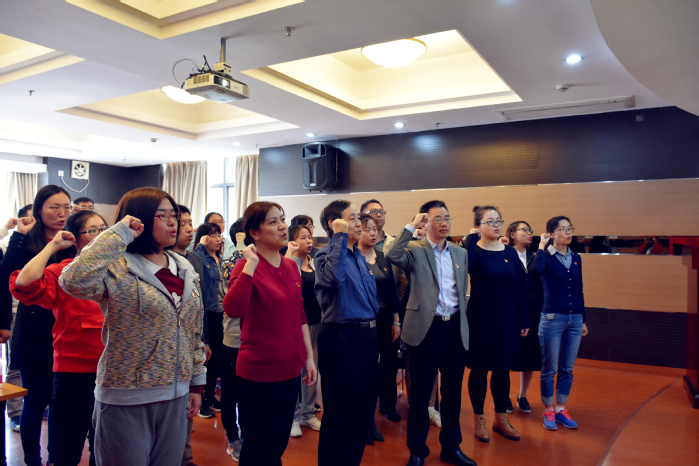 活动中,大家纷纷表示在平时的工作生活中要重视饮食、运动等健康问题,“身体是革命的本钱”只有身体健康,才能更好地完成自身工作,并在工作中改革创新、追求卓越,为学校的发展贡献力量。随后,现场的党员同志在党旗下重温入党誓词。