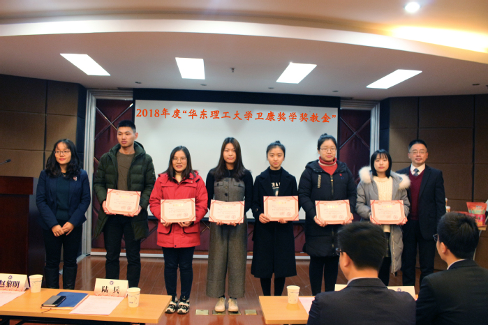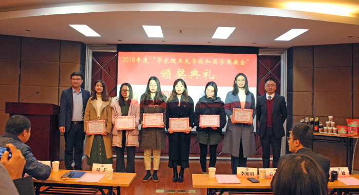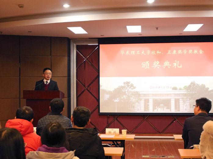 2019年1月19日,我院欣和奖学奖教金、卫康奖学奖教金颁奖典礼在实验十八楼315隆重举行。山东欣和食品工业有限公司销售总监李知明先生、华东区域经理高古风先生、销售经理曹通先生、李蓉女士和李萱女士出席颁奖典礼,学院党委书记陆兵,副院长赵黎明、学工委主任吴蓉及师生代表60多人出席仪式。