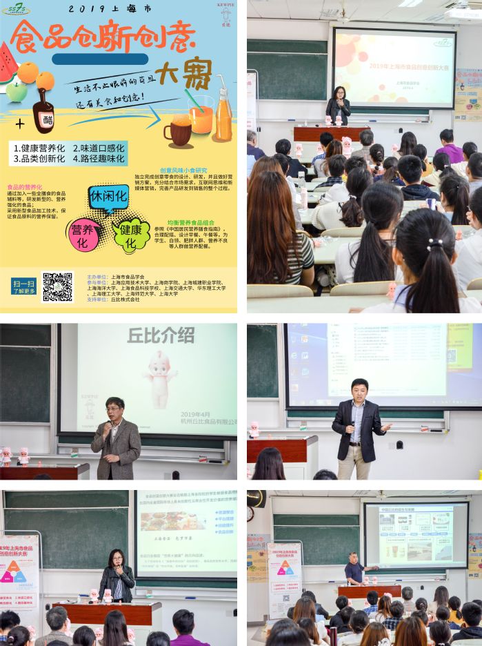 5月9日中午,2019年上海市食品创意创新大赛宣讲会在奉贤校区D106教室举行。食品创意创新大赛旨在鼓励在校大学生根据食品物料生物理化属性和食品加工工艺特性,开发出在国内或者国际市场上具有创新性及商业性开发价值的营养健康产品。并为大学生提供食品研发实践及展示的平台,激发学生对食品专业学习及食品创意、研发的兴趣,培养学生创新创业技能,使学生将理论知识与实践技能相结合,提升学生综合素质与就业竞争能力,同时为上海不同院校大学生在学习专业知识及技能培养等方面的交流提供一个平台。出席本次宣讲会的有食品系周家春教授、学院团委书记富琳桦、食品系刘卫兵、杜磊、辅导员徐亚飞、上海食品学会办公室副主任郭燕茹、杭州丘比食品有限公司醋产品开发科长马国杰以及近100名学生出席了此次会议,宣讲会由食品系刘卫兵主持。