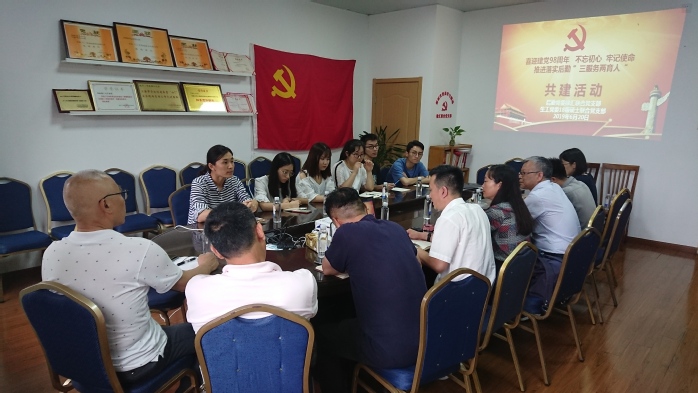 活动开始,各支部成员各自介绍了个人、岗位和专业的基本情况。后勤党委副书记兼后勤保障处副处长杨雅伟代表后勤对我院党委18级硕士联合党支部同学的到来表示欢迎。后勤徐汇联合党支部书记曹建方就党建工作、思想建设、特色实践、创新课题、支部共建等方面向我院支部学生介绍其支部党建工作的情况;我院党委18级硕士联合党支部书记石桐代表支部作了发言,向徐汇联合党支部详细介绍了支部建设和党员的专业分布情况,表达了对支部共建形式的肯定和未来执行效果的憧憬我院辅导员孙希彤对两支部共建表示祝贺,希望双方支部能够有效利用共建平台,增进师生互动和了解,同时也希望我院能够利用专业特点为学校后勤服务献计献策,与后勤党委徐汇联合党支部携手打造优秀党支部。