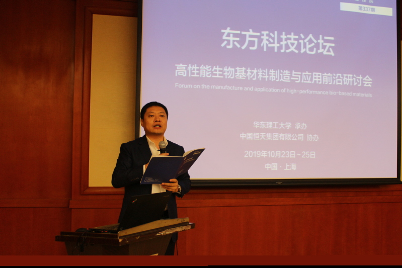 承办的第337期东方科技论坛——高性能生物基材料制造与应用前沿研讨会,在上海科学会堂成功举行,上海市科委基地处李力雄处长主持开幕式,李涛副校长出席论坛开幕式并致辞,中国恒天集团有限公司副总裁王东兴致辞,大会执行主席赵黎明教授介绍嘉宾并致欢迎辞。