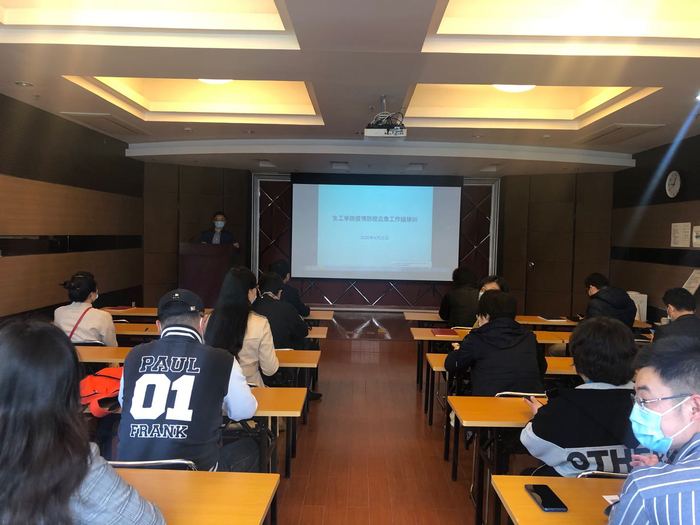 为深入贯彻落实习近平总书记关于新冠肺炎疫情防控的重要讲话精神,提升学院疫情防控应急处理能力,全面做好集中返校后的师生安全保障工作,确保师生返校后良好的教育教学秩序,学院于4月25日上午在徐汇校区实验18楼学院会议室开展疫情防控应急处置培训。本次培训分三批进行,学院党政领导班子及由教工志愿者组成的疫情防控工作组近80人参与了本次培训。院党委副书记陆兵主持本次培训。