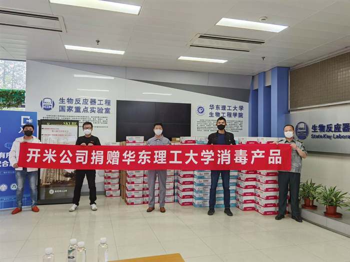 理事会常务副理事长单位。在疫情发生以来,作为上海市应急征用单位,开米公司1月31日就全面复工复产,受命为抗疫加班生产消毒剂等物资。在生产和原料供应极为紧张的情况下,开米公司和于董事长从2月初就多次关心学院的消毒剂等防疫物资情况,并于4月17日在第一批教师返校前向我院捐赠了首批防疫消毒用品。