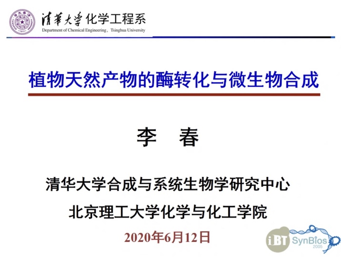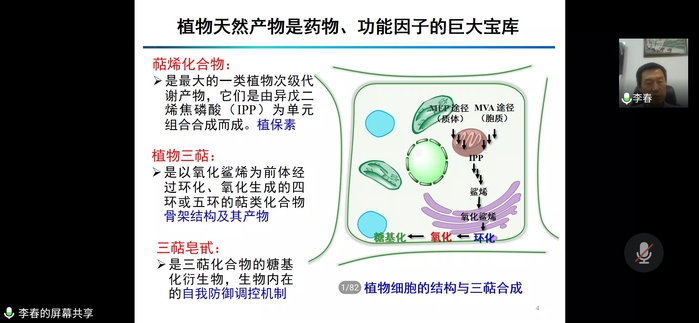 2020年6月12日上午九点半,研究生名师讲坛第一场主题讲座在研究生名师讲坛第一场主题讲座在腾讯会议线上平台如期举行。国家杰出青年科学基金获得者、清华大学李春教授受邀为全体与会师生做了有关植物天然产物的酶转化和微生物合成的主题报告,讲述甘草生物合成的“中国故事”。我院主管研究生工作的副院长郁惠蕾教授致辞,热烈欢迎李教授百忙之中为我院师生做专题报告。讲座由院研究生会蔡书善同学主持,全体师生近三百人在线聆听,并积极参与线上讨论。