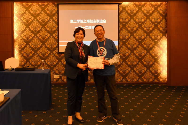 院长庄英萍给每位理事颁发了聘书,对各位理事的奉献表示感谢,期待生工学院上海校友联谊会在校友工作中发挥主导作用,探索一条新路,让校友会成为生工校友向往的温馨之家。