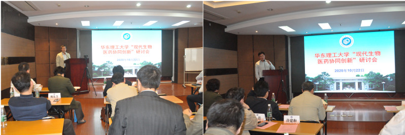 生工学院教授张立新、许建和、魏东芝、谭文松、庄英萍分别从创新微生物药物制造、酶的分子工程与过程工程研究、定制酶与细胞工厂促进绿色生物制造、动物细胞培养在生物医药领域的应用、生物过程优化放大理论与实践五个方面做了专题汇报。药学院教授杨弋、杨有军针对细胞代谢分析与调控技术、面向生物医药的染料分子工程研究进行了汇报。化分学院教授郭志前从分子探针与精准诊疗方面、信息学院教授金晶从基于脑机接口的康复技术及其应用方面进行了汇报。