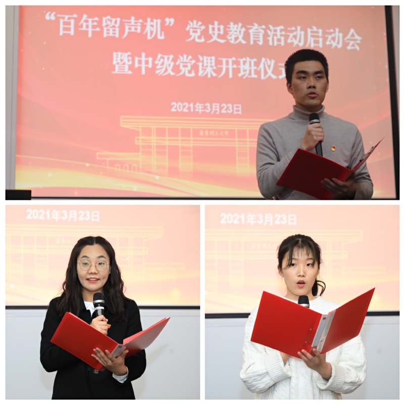 左鹏在介绍活动时表示,在党的百年华诞倒计时100天之际启动“百年留声机”党史学习教育,100名学子通过青年大学生视角,用100秒的时间讲述100个党史故事,用同学们喜闻乐见的方式,多角度回顾党的百年历程和伟大成就,激发广大青年学子的思考与共鸣,增强党史教育的吸引力、说服力和感染力。