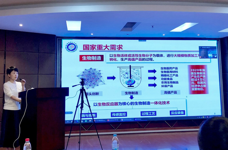 院长庄英萍致辞,代表学院对与会专家学者和海内外青年才俊表示欢迎和感谢,她表示生工学院非常重视发展智能生物制造、创新人才引进和培养。生物反应器工程国家重点实验室主任张立新、副主任刘琴、主任助理郑高伟分别作了题为“国之重器,您的机遇”、“华理生物制造——邀你共同打造国家战略科技力量”、“高性能酶催化剂的创制与应用研究”的报告,详细介绍了国重室的整体情况、优势方向和代表性研究成果。