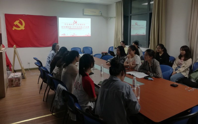 国重室研究生第五党支部书记张雅敬以“不忘来时路, 以史增自信”为主题,围绕本校抗生素制造工学专业的建立与发展,向各位党员介绍了在党的领导下中国抗生素研究的艰辛历程,以及我院马誉瀓教授、俞俊棠教授、张嗣良教授等人为我国抗生素制造工学专业及生物工程专业的建立作出的里程碑式的贡献。她鼓励支部党员以史学为基,致力创新发展,树立科技报国的伟大理想,发挥党员的先锋模范带头作用,为国民大健康事业添砖加瓦。