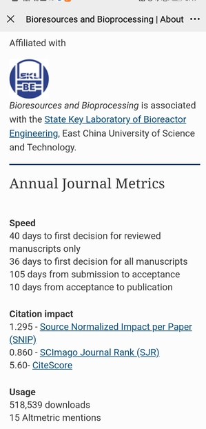 生物反应器工程国家重点实验室自主创办,英文全名为《Bioresources and Bioprocessing》,国际出版物编号为ISSN2197-4365。该刊在2014年借助合作方Springer Open的开放出版平台正式上线,迄今平稳运行近8年,发表论文400多篇,期刊论文的下载量目前每月超过6万次,在服务全球学界的同时也有力地提升了 一本道