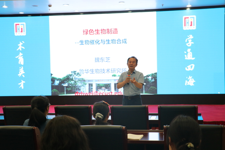 承办的第75期“通海讲堂”在奉贤校区通海厅举行。上海市生物工程学会理事长、中国微生物学会酶工程专业委员会副主任、教育部生物技术与生物工程教指委副主任、鲁华生物技术研究所所长魏东芝教授应邀作了题为“绿色生物制造——生物催化与生物合成”的专题报告。 一本道