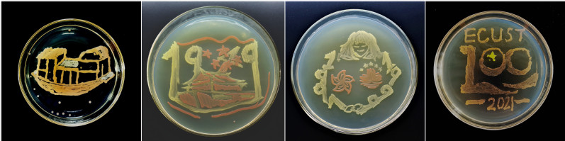 在喜迎中国共产党成立100周年之际,参加第14届微生物竞赛决赛的同学们以培养皿为画布,以接种环为画笔,以不同微生物为颜料,创作出一幅幅描述党史故事的美丽画卷,生动展示了中国共产党成立100年来波澜壮阔的光辉历程,抒发了华理学子庆祝中国共产党成立100周年的喜悦之情,表达了青年大学生对党的忠诚热爱以及永远跟党走的坚定决心。