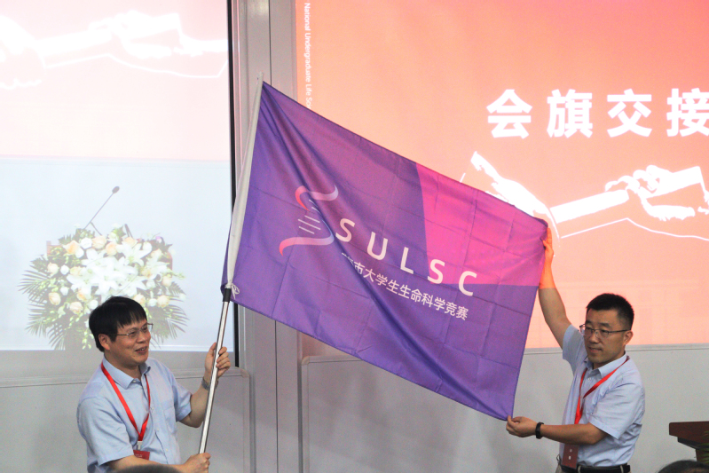 最后,东华大学黄焰根教授从王启要教授手中接过会旗,成为第四届上海市大学生生命科学竞赛承办单位。