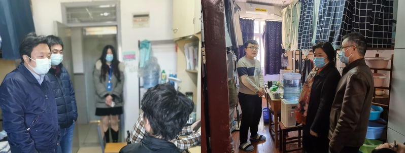 人性化做好学生返校和心理疏导工作。2月25日,吴辉、庄英萍、陆兵、左鹏带领辅导员们深入奉贤、徐汇校区宿舍与学生交流,询问学生学习情况、毕业论文和工作落实情况,认真了解学生在学习和生活中的困难。同时,鼓励同学们锻炼身体,遵守防疫要求,注意个人防护。勉励学生尽快调整状态,以更加饱满的热情投入新学期的学习中。同学们对学院的关心表示感谢,并表示在疫情期间会严格按照学院和学校规定做好防护,在新的一年继续奋斗,努力提升自己。