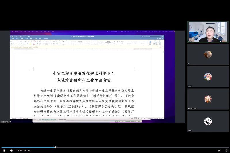 王启要首先梳理了推免流程与时间结点,缓解学生近期的焦虑情绪;随后以2021年推免文件为例,对创新学分获取、成绩计算方式及相关注意事项进行讲解;最后,就同学们所关心的如何申报夏令营、需要的准备工作、如何选择学校与导师、保研本校与外校等问题进行了答疑。