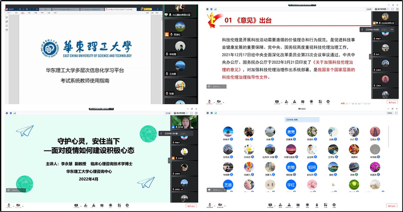 心理咨询中心副主任李永慧副教授作题为“守护心灵,安住当下——面对疫情如何建设积极心态”的讲座。面对疫情带来困难,广大师生要保持乐观积极的心态,学会情绪管理,适当转移注意力,调整好心态,高效地进行学习和工作。