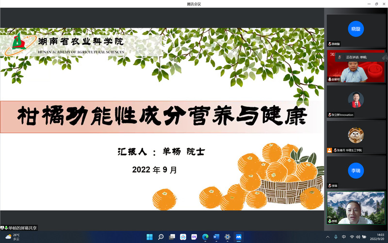 70周年校庆报告活动暨第二十六期俊棠论坛。单杨院长作了题为“柑橘功能性成分的营养与健康”的学术报告,报告会由科学技术发展研究院院长赵黎明教授主持,生物反应器工程国家重点实验室主任张立新教授等近300名校内外师生在线聆听了报告。