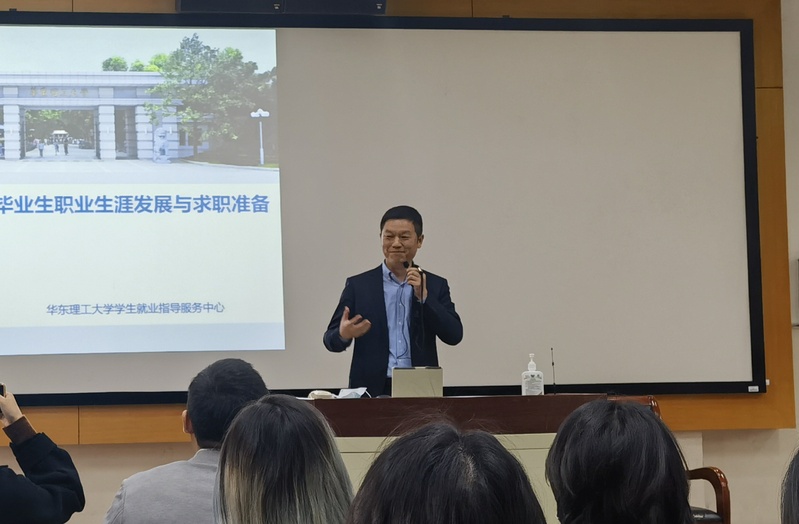 学生工作部副部长、学生就业指导服务中心主任郑东做就业指导动员, 一本道