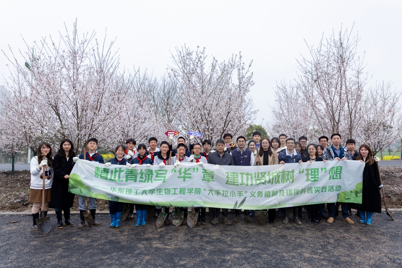与奉贤区西渡学校在奉贤区团区委、西渡街道团工委的大力支持下共同开展植此青绿写“华”章,建功贤城树“理”想——“大手拉小手”义务植树及环保科普实践活动。奉贤区建设交通工作党委副书记张杰、西渡街道党工委副书记黄蕾、团区委副书记安法梁 (兼)、区建设交通团工委书记谢嘉玮、西渡街道团工委书记于薇、西渡学校大队辅导员董洁莹,学院党委副书记左鹏、学院团委副书记梁心怡、辅导员张佼、李静宜以及来自 一本道
