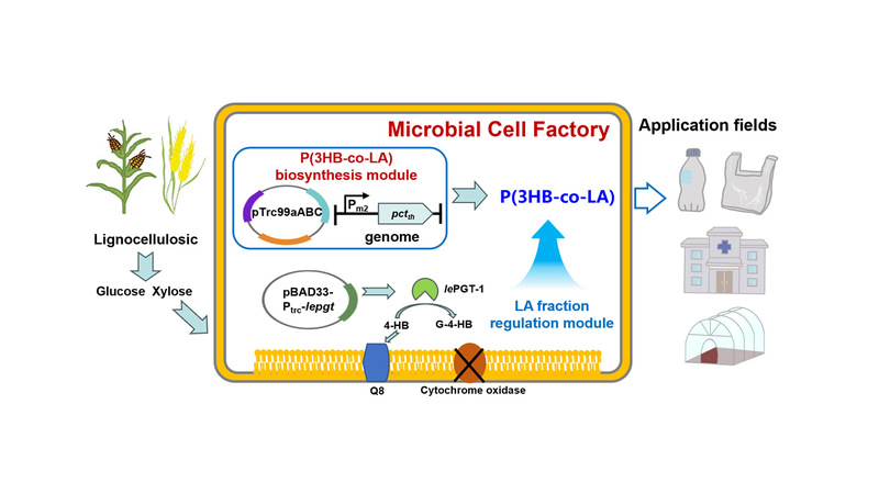 图一 大肠杆菌生产P(3HB-co-LA)的可持续生物制造路线