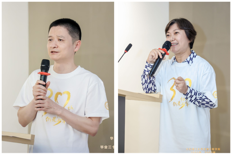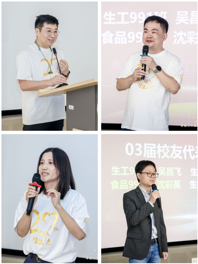 阔别20年、30年,今日在母校重逢、相聚,校友们都无比喜悦和激动,1993届校友代表丁万和、沈晴,2003届校友代表陈志、吴昌飞、沈彩英、徐敏纷纷发表感言。1993届校友徐笑一、何强、罗萍、吴懿文代表海外校友,通过远程视频与大会现场互动。校友代表们回忆起校园往事,讲述自己的发展经历,表达了对母校的情感及对老师的感谢,并对母校送上诚挚的祝福,会场不时爆发出阵阵欢乐的笑声和热烈的掌声。
