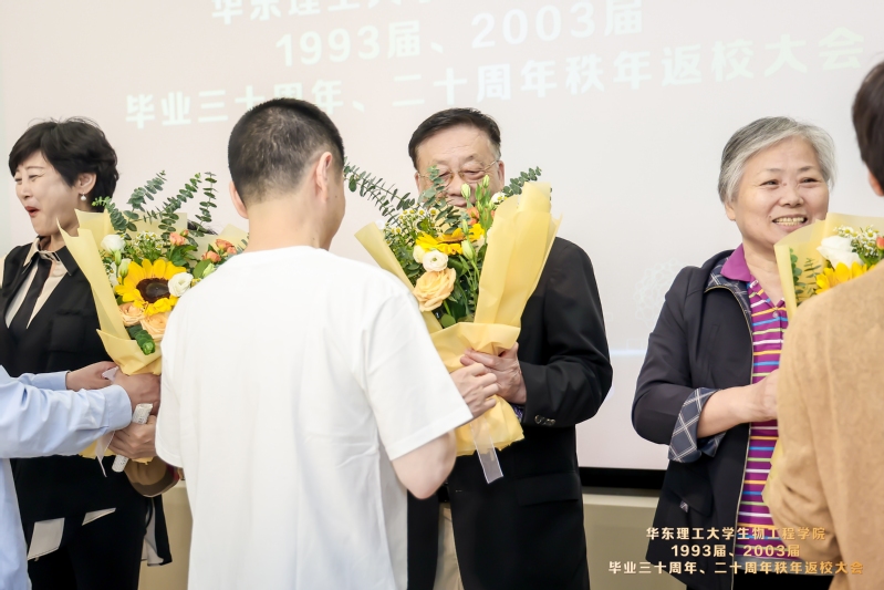 一日为师,终身感怀,校友代表向老师们献上鲜花,感谢师恩。方帼萍老师代表教师讲话。她回忆起与校友们共渡的时光,为校友们如今取得的成绩感到自豪和骄傲,表达了对校友们今后事业发展的祝福,并呼吁大家为母校的发展贡献力量。