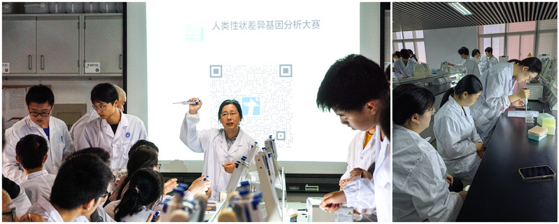 、药学院、商学院、社会与公共管理学院、信息科学与工程学院等12个学院500余名学生参加,其中150名学生通过遴选进入复赛。5月19日,在同学们的翘首期盼中复赛在奉贤校区实验七楼的实验教学示范中心——发酵工程实验教学示范中心举行,复赛的主题是PCR-RFLP法鉴定自己的抑癌基因--p53基因的多态性。复赛正式实验前,专业老师讲解了基本实验原理以及实验仪器的操作方法,很多文科学院的同学第一次操作基因分析实验的仪器,大家都兴趣盎然,认真听讲并做笔记。