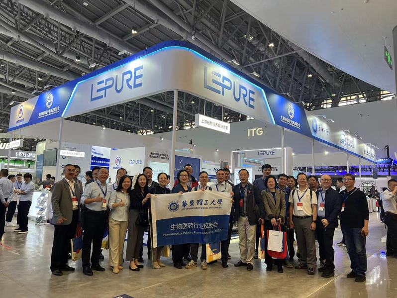 上午,参访人员在遆倩敏校友带领下,参观了由生工校友担任高管的乐纯生物、多宁生物等企业展位,了解我国制药机械领域最新技术成果和创新产品。