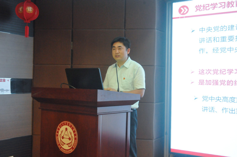 学院党委副书记左鹏以“严守党的纪律,坚守初心使命”为主题,为毕业生党员讲授了离校教育专题党课,他介绍了这次党纪学习教育的目标和要求,对新修订的《中国共产党纪律处分条例》进行了解读,重点讲解了条例中的六项纪律的主旨要义和规定要求。他强调,党纪不仅是对党员干部的警示和约束,也是帮助和保护。党员要搞清楚党的纪律规矩是什么,弄明白能干什么、不能干什么,始终做到忠诚干净担当。他希望,全体毕业生党员要以党的纪律为准则,树牢底线意识和红线意识,在毕业生文明离校过程中发挥先锋模范作用,扣好迈入社会的第一粒扣子,更好地肩负起时代重任,为强国复兴贡献自己的青春力量。
