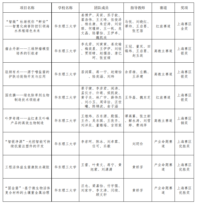 图片说明:中国国际大学生创新大赛(2024)(上海赛区)中学院团队获奖情况