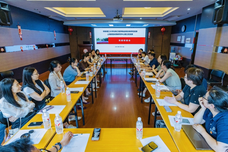 应用生物学系党支部与上海实验动物研究中心第三党支部在实验十八楼 315 室举行联建交流活动。此次活动聚焦深化产学研融合、共建高质量实践平台,为双方合作注入新活力。生物工程学院党委书记程家高、上海实验动物研究中心党总支书记卢慧懿,以及双方党员骨干20余人出席。