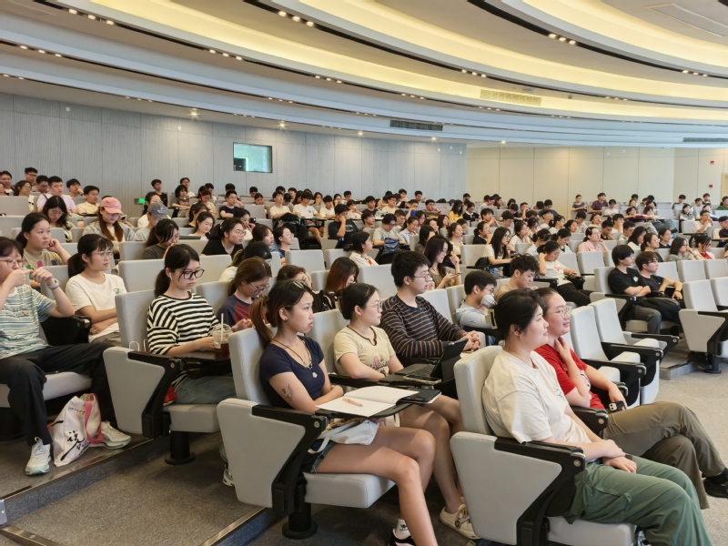 郑东结合学校近年整体毕业去向数据,分析了当前就业形势,深入浅出地讲解大学生求职的主要流程与内在逻辑,鼓励同学们尽早做好职业规划,用积极行动消除毕业季的焦虑。同时,他还详细介绍了学校和学院提供的就业资源,建议同学们充分利用好身边资源优势,早日找到心仪工作。