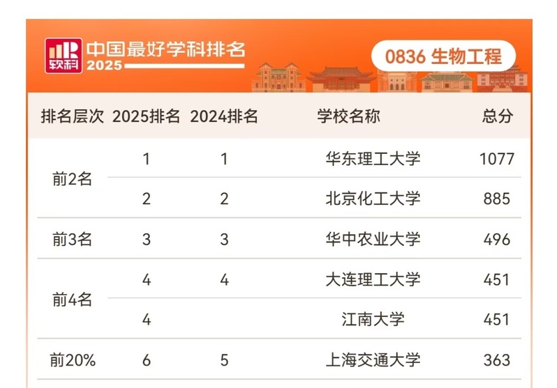 生物工程学科再度荣膺学科排名全国第一,生物工程学科的顶尖地位得到进一步巩固与广泛认可。